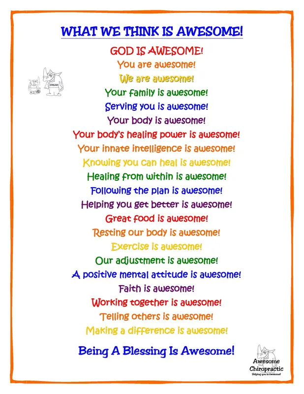 Helping you heal is Awesome. To feel better from headaches, low back pain, asthma, fibromyalgia, or whiplash is just Awesome. Being healthy makes life easier, you move free act wonderfully and are yourself again. As you read our posts and pages you will see some odd nuances.